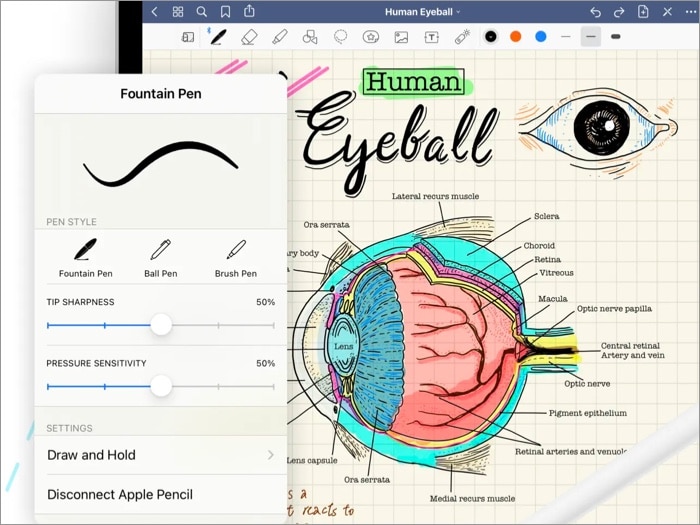 Γι 'αυτό είναι μια δημοφιλής εφαρμογή iPad μεταξύ των μαθητών. Διαθέτει χαρακτηριστικά όπως στυλό σχεδίασης, προσαρμόσιμα χρώματα, απλή εξαγωγή PDF, φωνητική εγγραφή και η επιλογή να αναζητήσετε χειρόγραφες σημειώσεις.