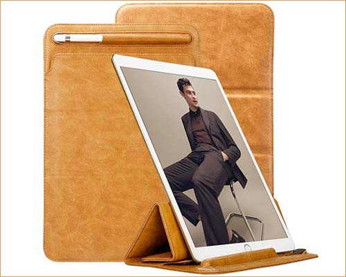 Έχει εσωτερικές υποδοχές όπου μπορείτε να κρατήσετε κάρτες, μετρητά και άλλα μικρά πράγματα. Η μαγνητική σφραγίδα σάς επιτρέπει να στερεώσετε και να ανοίξετε το χαρτοφύλακα με ευκολία. Τέλος, το Moko iPad Pro Sleeve έρχεται σε επτά ελκυστικές χρωματικές παραλλαγές όπως μαύρο, καφέ, γκρι, μοβ κ.λπ.