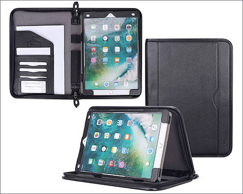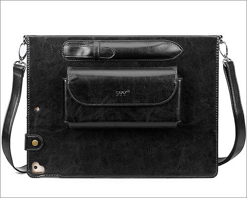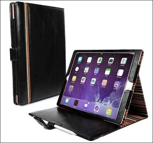 Το Procase Leather Case για το iPad Pro διαθέτει τέσσερα διαφορετικά χρώματα και κατασκευασμένο από δερμάτινο δέρμα. Ένα μαλακό εσωτερικό εξασφαλίζει την προστασία από τις γρατζουνιές. Επίσης, έχει επίσης πολλαπλές υποδοχές για να δείτε το iPad Pro σας με διαφορετικούς αγγέλους. Άλλα χαρακτηριστικά αποτελείται από το μαγνητικό κλείσιμο και τη λειτουργία αυτόματης αφύπνισης/ύπνου. Τέλος, οι ακριβείς περικοπές σας δίνουν πρόσβαση σε όλες τις θύρες και τις λειτουργίες γρήγορα.