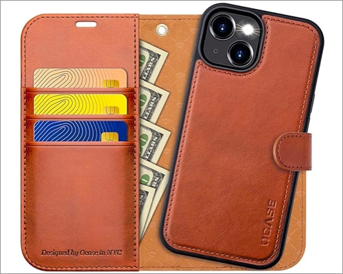 Σχεδιασμένο για να ταιριάζει στο iPhone 15 Plus, η δερμάτινη θήκη Ocase διατηρεί το smartphone σας νέο για πολύ. Το faux δερμάτινο κτίριο αισθάνεται μαλακό, αλλά προστατεύει από γρατζουνιές, μώλωπες ή ολισθήσεις. Επιπλέον, αυτή η δερμάτινη θήκη έρχεται σε μια συμφωνία πακέτου με έναν ανθεκτικό πορτοφόλι-cum-cardder. Ευτυχώς, μπορείτε να χρησιμοποιήσετε και τα δύο προϊόντα σε συνδυασμό και ξεχωριστά χωρίς καμία ταλαιπωρία.