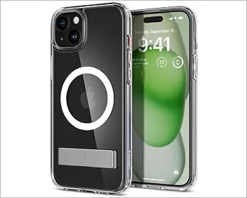 Το Spigen είναι γνωστό ότι δημιουργεί περιπτώσεις ποιότητας για iPhones. Με την περίπτωση Ultra Hybrid Magsafe, η μάρκα προσφέρει μια αστρική επιλογή για το iPhone 15 Plus. Είναι κατασκευασμένο χρησιμοποιώντας την τεχνολογία Hybrid-αποκλειστική από SPIGEN με υβριδική τεχνολογία με πολυανθρακικό πίσω και προφυλακτήρες TPU. Έτσι, αυτός ο ισχυρός συνδυασμός ευλογεί το iPhone σας με μια συναρπαστική τοποθέτηση και βελτιωμένη πρόσφυση.