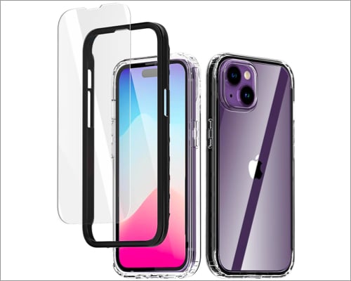 Το πίσω μέρος αυτής της περίπτωσης είναι διαφανές με μια επικάλυψη κατά της κίτρινης, αποκαλύπτοντας το iPhone 15 Plus σε πλήρη δόξα. Επίσης, διαθέτει ανυψωμένες στεφές γύρω από την οθόνη και την κάμερα και τις εξωτερικές γωνίες TPU για απορρόφηση σοκ. Εκτός αυτού, θα πάρετε ένα ενσωματωμένο προστάτη οθόνης ευαίσθητο στην αφής.