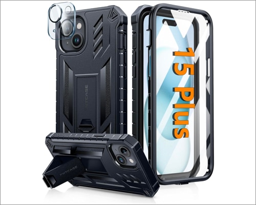 Εκτός από τις συμπαγείς ακατέργαστες άκρες και τις ανυψωμένες στεφές γύρω από την κάμερα, θα πάρετε ένα ενσωματωμένο προστατευτικό οθόνης για να προστατεύσετε την οθόνη. Εκτός αυτού, απολαύστε ταινίες σε λειτουργία τοπίου με το εργονομικό kickstand στο πίσω μέρος. Παρόλο που αυτή η περίπτωση προσθέτει επιπλέον ογκώδες στο iPhone 15 Plus, μπορείτε να το μεταφέρετε εύκολα με το αποσπώμενο κλιπ περιστρεφόμενης ζώνης γύρω από το kickstand.