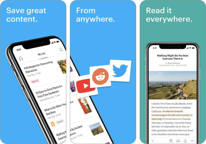 Η ανάγνωση είναι μία από τις καλύτερες συνήθειες που δεν έχουν μόνο για έναν επιχειρηματία αλλά για όλους. Ωστόσο, δεν το αγαπούν όλοι, και ίσως υπάρχει έλλειψη χρόνου. Η εφαρμογή τσέπης είναι μια λαμπρή λύση σε αυτήν. Η εφαρμογή είναι ένας δίκαιος χώρος σε μερικά από τα καλύτερα διαθέσιμα περιεχόμενα στον ιστό. Μπορείτε να αποθηκεύσετε ένα άρθρο για να το διαβάσετε αργότερα και να συνεχίσετε όποτε επιθυμείτε και στη συσκευή που θέλετε. Αυτό δεν είναι όλο. Μην χάσετε τη λειτουργία Ακούστε την εφαρμογή. Θα αφηγηθεί το άρθρο ενώ κάνετε άλλα πράγματα ή απλά ξεκουραστείτε με τα μάτια σας κλειστά.