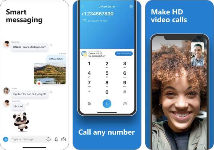 Αυτή είναι μια από τις πιο συνηθισμένες εφαρμογές που χρησιμοποιούνται από επαγγελματίες σε όλο τον κόσμο. Χρησιμοποιείται ευρέως για βιντεοκλήσεις και συνέδρια που μπορούν να φιλοξενήσουν έως και 49 άτομα ταυτόχρονα. Μπορείτε επίσης να το χρησιμοποιήσετε για συνομιλίες, φωνητικές κλήσεις και βασικούς σκοπούς κοινής χρήσης αρχείων. Μπορείτε να πραγματοποιήσετε απεριόριστες κλήσεις σε συναδέλφους χρήστες Skype εάν χρησιμοποιείτε WiFi ή έχετε απεριόριστο σχέδιο δεδομένων.