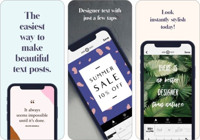 Το Typorama σάς επιτρέπει να προσθέσετε ευχάριστο κείμενο σε φωτογραφίες. Σας δίνει τη δυνατότητα να δημιουργήσετε σύνθετες διατάξεις κειμένου χρησιμοποιώντας διαφορετικές γραμματοσειρές και γραμματοσειρές. Έχει περισσότερα από 50 στυλ (συμπεριλαμβανομένων των 3D στυλ) και σχέδια για να δημιουργήσει ένα στυλ κειμένου για σας τυχαία. Επιπλέον, αυτή η εφαρμογή μπορεί να βρει πάνω από εκατό γραμματοσειρές και γραμματοσειρές.