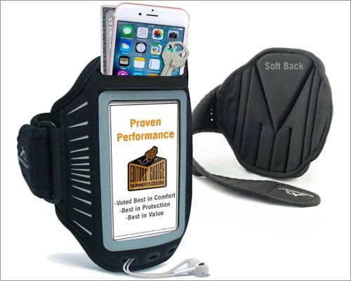 Το περιβραχιόνιο μπορεί επίσης να ρυθμιστεί ώστε να ταιριάζει στο προσαρμοσμένο μέγεθος σας. Επιπλέον, προστατεύει το τηλέφωνό σας από πιτσιλιές νερού χάρη στην προστατευτική οθόνη που καλύπτει το τηλέφωνό σας. Συνολικά, αν βρίσκεστε στον τρόπο ζωής γυμναστικής, δεν μπορείτε να πάτε στραβά με αυτό το περιβραχιόνιο. Εάν είστε freak γυμναστήριο, ελέγξτε τις εκπληκτικές εφαρμογές τρέχουσας για το iPhone σας.