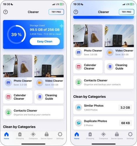 Cleaner - Δωρεάν αποθήκευση προσφέρει χαρακτηριστικά για να σας βοηθήσει να καθαρίσετε το iPhone σας με ευκολία. Όπως και άλλες εφαρμογές σε αυτήν τη λίστα, περιλαμβάνει ένα διπλό καθαριστικό φωτογραφίας και βίντεο, ένα έξυπνο χαρακτηριστικό "Easy Clean" που προσδιορίζει παρόμοιες φωτογραφίες και μεγάλα βίντεο για γρήγορη διαγραφή.