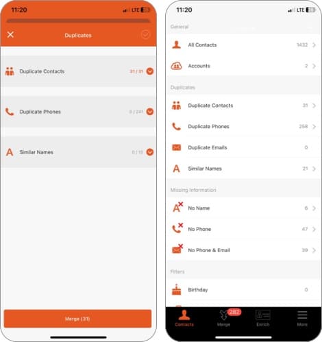 Το Easy Cleaner είναι σε αντίθεση με άλλες εφαρμογές καθαρισμού iPhone σε αυτήν τη λίστα. Είναι ένα εργαλείο διαχείρισης επαφών που σας βοηθά να διορθώσετε προβλήματα όπως οι διπλές επαφές και οι επαφές με τις πληροφορίες που λείπουν μακριά από τη συσκευή σας.
