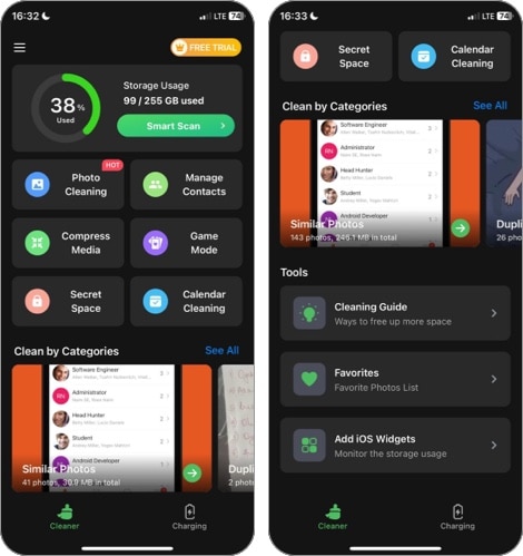 Αυτό είναι όπου οι εφαρμογές καθαριστών τρίτων μερών έρχονται σε πρακτικές. Μπορούν να σαρώσουν το iPhone σας όποτε θέλετε και να βοηθήσετε να καθαρίσετε τα αρχεία Junk με βάση τις επιλογές σας. Ορισμένες εφαρμογές καθαριστών προχωρούν ακόμη περισσότερο, προσφέροντας χαρακτηριστικά όπως η αφαίρεση διπλών επαφών και πολλά άλλα για να σας βοηθήσουν με άλλα πράγματα.