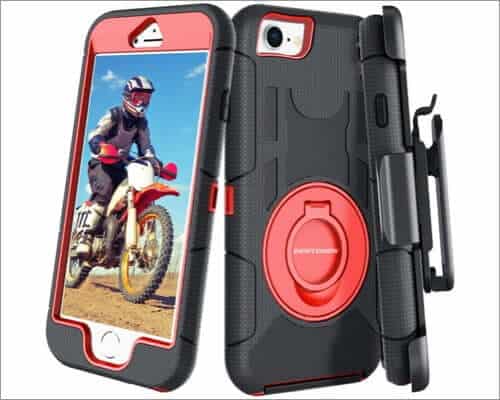 Αυτή η θήκη ζώνης διαθέτει μη-ολισθηρές καουτσούκ φινίρισμα και κουμπιά για εύκολη πρόσβαση σε όλες τις λειτουργίες και τα στοιχεία ελέγχου στο iPhone σας. Είναι χτισμένο για να διαρκέσει με ένα ενισχυμένο πλαίσιο πολυκανθώδους στερεού πυρήνα και ένα περιστρεφόμενο κλιπ ιμάντα για κατακόρυφη ή οριζόντια χρήση.