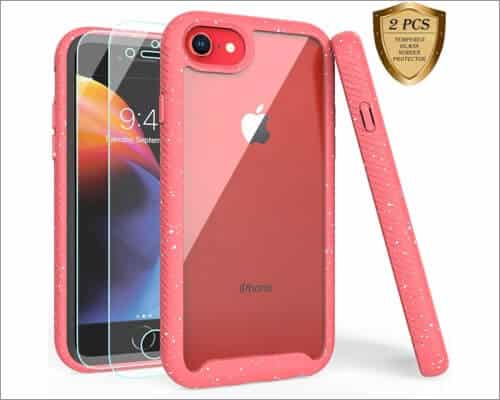 Ένα από τα καλύτερα πράγματα σχετικά με αυτή την περίπτωση είναι ότι έρχεται με μια φρουρά γυαλιού. Αυτό εξασφαλίζει προστασία 360 μοιρών για το iPhone SE σας. Το υλικό υψηλής ποιότητας το καθιστά μια ανθεκτική περίπτωση, η οποία είναι ανθεκτική.