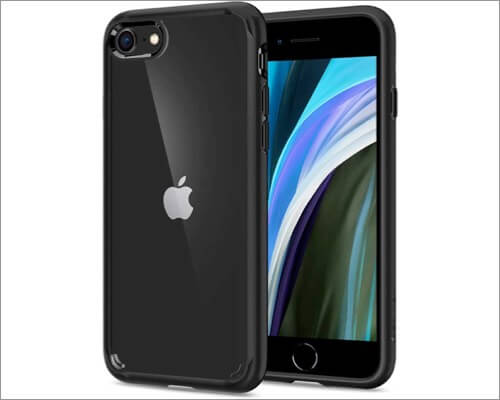 Ο Spigen παραδίδει αυτή τη σαφή υβριδική ασύρματη υπόθεση που υποστηρίζεται από το iPhone SE 2 με προστατευτική μεμβράνη. Πριν εγκαταστήσετε αυτήν την υπόθεση, απλώς το ξεφλουδίστε από μέσα και έξω. Στη συνέχεια, ζήστε μια απλή, τοποθετημένη μορφή και διαφανή περίπτωση.