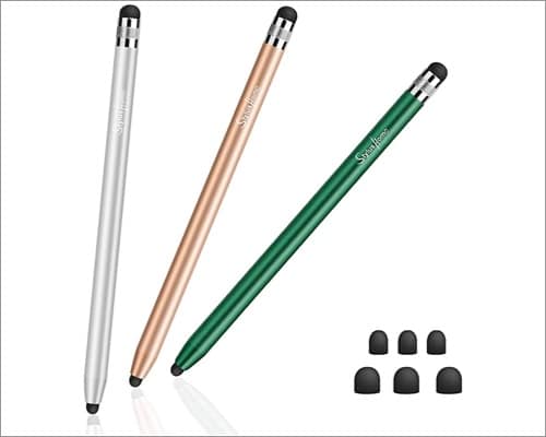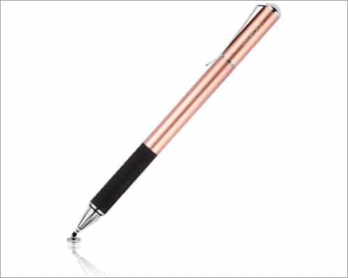 Αυτή η γραφίδα 2 σε 1 είναι μια άλλη μεγάλη προσαρμογή για το iPhone σας. Είναι κατασκευασμένο από ανοξείδωτο χάλυβα και αλουμίνιο που προσφέρει μια πλούσια εμπειρία που μοιάζει με στυλό. Η γραφίδα αποτελείται από μια διαφανή άκρη δίσκου πυριτίου στο μπροστινό άκρο και μια άκρη ινών στο πίσω μέρος.
