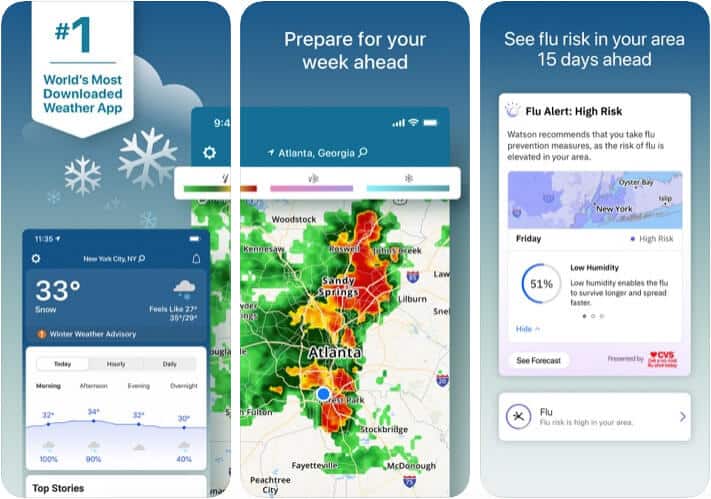 Γνωρίζατε ότι ακόμη και η προεπιλεγμένη εφαρμογή καιρού στο iPhone και το iPad χρησιμοποιεί δεδομένα από το κανάλι καιρού; Η εφαρμογή Weather.com's The Weather Channel είναι από τις καλύτερες εφαρμογές για τη δουλειά. Σας επιτρέπει να σχεδιάσετε την ημέρα σας έως και 14 ημέρες νωρίτερα. Δείχνει επίσης τοπικούς χάρτες και προβλέψεις, καθώς και σπάζοντας ειδήσεις και βίντεο με κλειστές λεζάντες.
