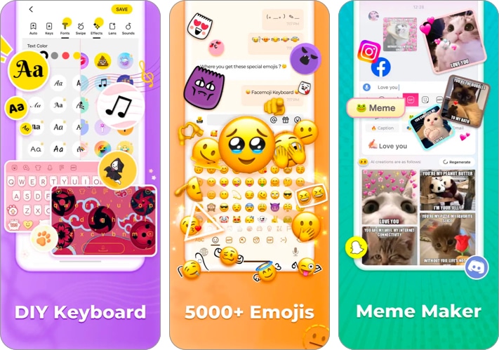 Εάν θέλετε να ξεχωρίζετε πάνω από μηνύματα κειμένου, το Facemoji θα μπορούσε να σας βοηθήσει να το επιτύχετε. Υποστηρίζει διάφορες κομψές και διακοσμητικές γραμματοσειρές και πάνω από 5000+ emojis. Για να δημιουργήσετε εξατομικευμένα αυτοκόλλητα, το αυτοκόλλητο DIY Avatar σε αυτό το πληκτρολόγιο μπορεί να δημιουργήσει memojis με βάση το πρόσωπό σας, το οποίο μπορείτε να μοιραστείτε αργότερα.