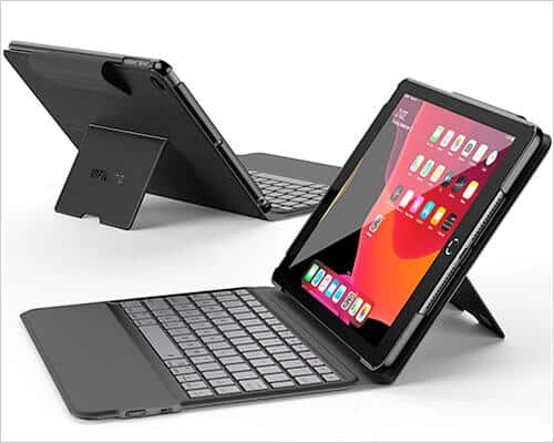 Η χρήση του σκληρού πλαστικού και του δέρματος PU έχει ενισχύσει το περίβλημα για να υπομείνει σοκ. Με περισσότερο από ένα εύχρηστο πληκτρολόγιο, είναι αναμφισβήτητα ένα από τα φιλικά προς τον προϋπολογισμό καλύμματα πληκτρολογίου για το iPad 7.