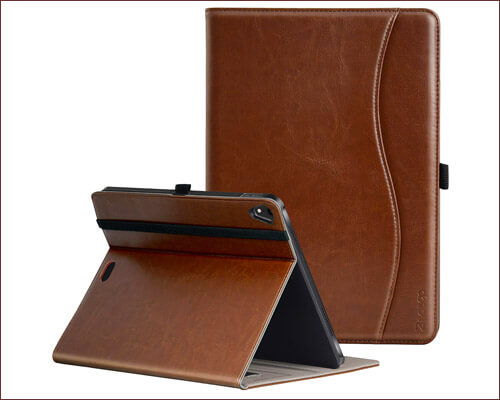 Μιλώντας για το υλικό, το νάιλον υφασμένο ύφασμα και το δέρμα PU κάνουν το Ztotop μια μακρόχρονη περίπτωση. Επιπλέον, το μπροστινό κάλυμμα έχει σχεδιαστεί για να υποστηρίζει τη λειτουργία αυτόματης ενεργοποίησης/απενεργοποίησης για να ενισχύσει τη διάρκεια ζωής της μπαταρίας του iPad. Και ω, για να μην μιλήσουμε για το μαύρο, το μπλε και τις αριστοκρατικές καφέ αποχρώσεις που είναι αρκετά καλές για να ταιριάζουν με το στυλ σας.