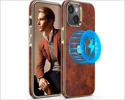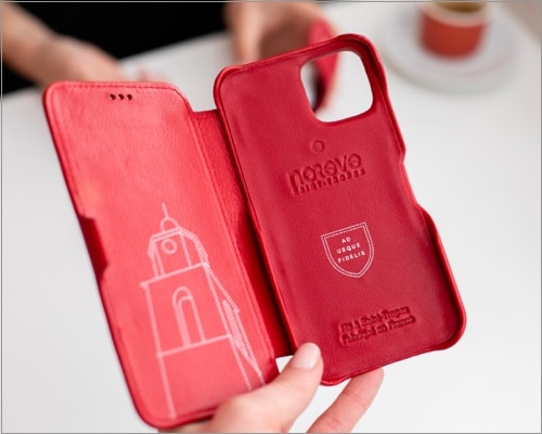 Έχει 0,5 χιλιοστά ανυψωμένα άκρα στην κάμερα και 1,6mm ανυψωμένες άκρες πάνω από την οθόνη. Επιπλέον, μπορείτε επίσης να έχετε έως και τέσσερα φύλλα ή κάποια μετρητά που έχουν κολλήσει μέσα στην δερμάτινη θήκη. Είναι επίσης καλό να κρατάτε και φαίνεται κομψό. Ωστόσο, δεν είναι συμβατό με αξεσουάρ Magsafe, αλλά λειτουργεί καλά με ασύρματους φορτιστές με δυνατότητα QI.