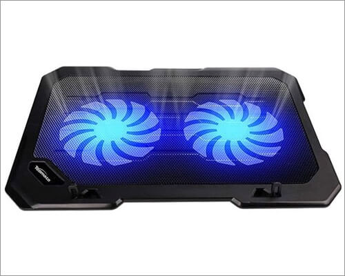 Θέλετε να διατηρήσετε την καμπίνα σας ήσυχη; Ελέγξτε αυτό το Kootek MacBook Cooling Pad, το οποίο διαθέτει σούπερ ήσυχους οπαδούς που δημιουργούν ένα περιβάλλον χωρίς θόρυβο για εσάς στο γραφείο και στο σπίτι. Σε αντίθεση με άλλα μαξιλαράκια ψύξης, αυτό έχει πέντε ενσωματωμένους οπαδούς με μπλε LED. Μπορείτε να ελέγξετε τους ανεμιστήρες με δύο διακόπτες για να τους ενεργοποιήσετε και να απενεργοποιήσετε. Το καλύτερο πράγμα για αυτό το μαξιλάρι είναι ότι μπορείτε να πατήσετε το διακόπτη για να επιλέξετε έναν ανεμιστήρα, τέσσερις οπαδούς ή και τους πέντε οπαδούς που εργάζονται μαζί.