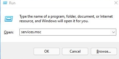 Βήμα 1:Ξεκινήστε πατώντας το πλήκτρο Windows + R Keyboard Shortcut. Στο παράθυρο διαλόγου εκτέλεσης που εμφανίζεται, πληκτρολογήστε το Services.msc και πατήστε Enter.