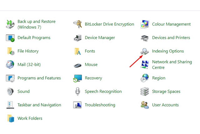 Βήμα 3.Κάντε κλικ στο κουμπί Επιλογές ευρετηρίου στον πίνακα ελέγχου.