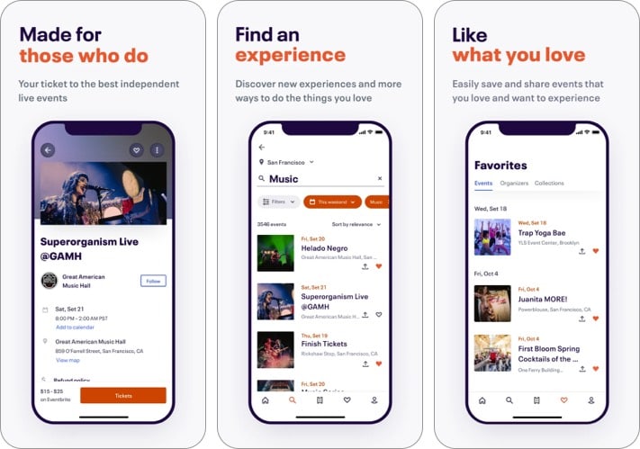 Ένα από τα αγαπημένα μου μη-υλιστικά δώρα είναι ο ποιοτικός χρόνος που δαπανάται μαζί. Το Eventbrite βοηθά έξω, επιτρέποντάς σας να βρείτε και να κάνετε κράτηση εισιτηρίων για τα καλύτερα γεγονότα κοντά σας. Ο καθένας μπορεί να δημοσιεύσει γεγονότα σε αυτήν την εφαρμογή, οπότε είστε υποχρεωμένοι να βρείτε κάτι μοναδικό και αδέσποτο.