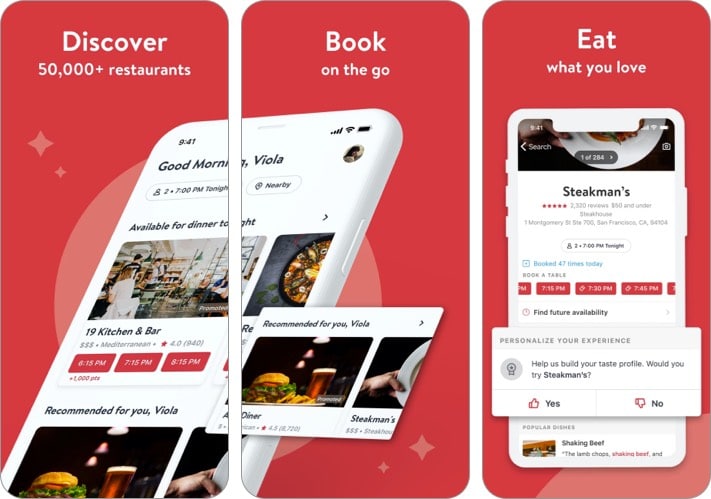 Το OpenTable είναι η εφαρμογή που μπορεί να σας βοηθήσει με αυτό. Κάνει βολικό να βρείτε και να κλείσετε ένα τραπέζι στα περισσότερα εστιατόρια που συμβαίνουν κοντά σας. Σας επιτρέπει να αναζητήσετε εμπειρίες για φαγητό σε 50.000+ εστιατόρια παγκοσμίως.