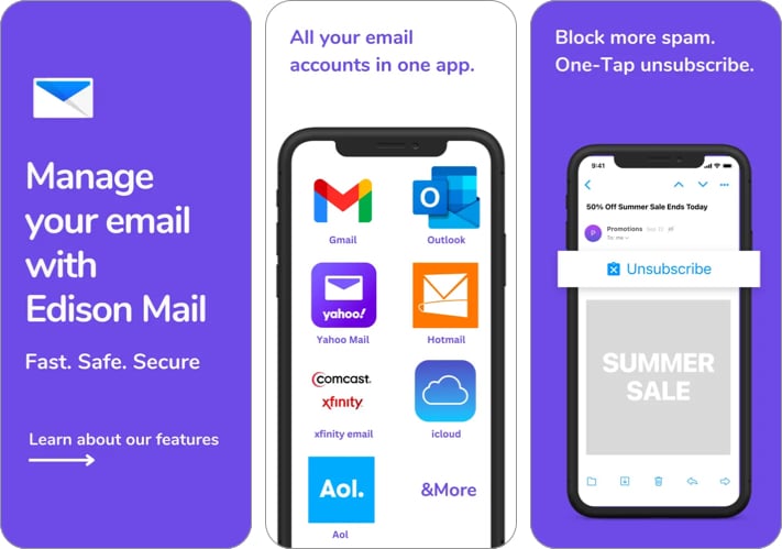 Μπορείτε να καταργήσετε την εγγραφή σας από το ανεπιθύμητο ταχυδρομείο, να αναβάλλετε τα μηνύματα και ακόμη και να αναστείλετε το ταχυδρομείο. Η εφαρμογή ανακαλύπτει επίσης και προτείνει τις υπογραφές HTML από το κουτί που αποστέλλεται. Η εφαρμογή υποστηρίζει το Gmail, το iCloud, το Yahoo, το Hotmail, το Outlook, το Office/ Outlook 365, το Exchange και το AOL, τους λογαριασμούς IMAP Mail κ.λπ.
