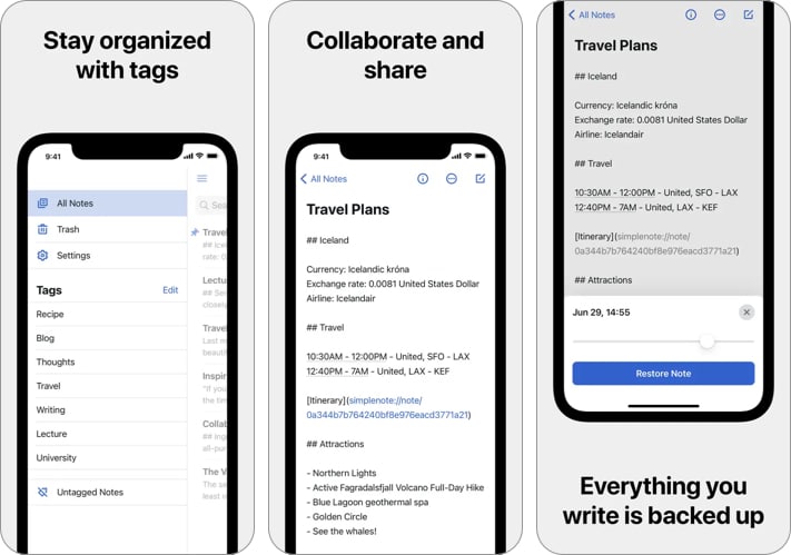 Το SimpleNote κάνει απίστευτα εύκολο. Με αυτήν την εφαρμογή, μπορείτε να καταγράψετε ιδέες και να κάνετε λίστες γρήγορα και αποτελεσματικά. Χρησιμοποιήστε ετικέτες και καρφίτσες για να διατηρήσετε όλες τις σημαντικές σας σημειώσεις οργανωμένες. Η καθαρή διεπαφή και οι εύχρηστες λειτουργίες καθιστούν πιο βολικό να παίξετε. Μπορείτε να συγχρονίσετε τα αρχεία σας για να αποκτήσετε πρόσβαση μέσω όλων των συσκευών σας.