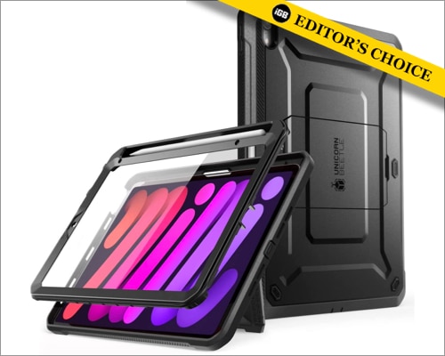 Η σειρά Supcase Unicorn Beetle είναι μια θωράκιση πλήρους σώματος για το iPad Mini 6. Διαθέτει πολυεπίπεδη θερμοπλαστική πολυουρεθάνη (TPU), ενσωματωμένο προστάτη οθόνης, αυλάκι στυλό και ρυθμιζόμενο κλωτσιά στο πίσω κάλυμμα.