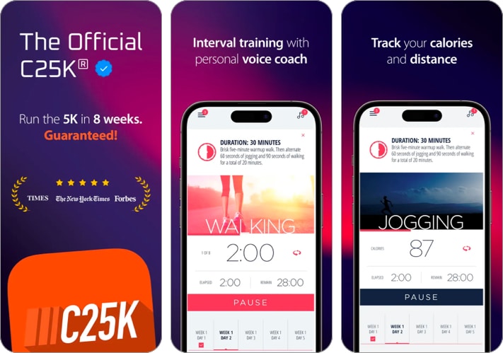 Το εξειδικευμένο σχέδιο θα σας εμποδίσει να εγκαταλείψετε, χάρη σε ένα μείγμα τρέξιμο και περπάτημα, το οποίο σταδιακά δημιουργεί δύναμη και αντοχή. Μια σειρά χαρακτηριστικών σας βοηθά στην πορεία, όπως η βολική προγύμναση ήχου, οι έγκαιρες προειδοποιήσεις, η χαρτογράφηση της πορείας σας, η ακρόαση μουσικής της επιλογής σας κ.λπ.
