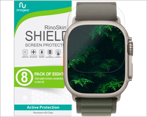 Μπορείτε να χρησιμοποιήσετε οποιαδήποτε θήκη Apple Watch Ultra 49mm με αυτό. Είναι ακριβώς σκαλισμένο χρησιμοποιώντας ένα λέιζερ για να εξασφαλίσει μια άψογη εφαρμογή. Εκτός αυτού, η μέθοδος υγρής εγκατάστασης επιτρέπει πολλαπλές προσπάθειες για σωστή ευθυγράμμιση. Επίσης, το κουπόνι αντικατάστασης ζωής μπορεί να καλύψει το κόστος των αντικαταστάσεων ταινιών για μια ζωή.