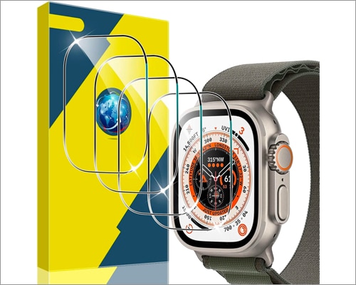 Αυτό είναι το ένα αν θέλετε ένα προστατευτικό φρουρό all-in-one για το ακριβό σας Apple Watch Ultra. Το Newways προσφέρει ένα σύνολο 6 προστατευτικών γυάλινων μεμβρανών, 2 προφυλακτήρες PC και ένα εύκολο κιτ εγκατάστασης. Επίσης, η προστατευτική 9Η σκληρυμένη μεμβράνη παρέχει HD σαφήνεια και δεν μειώνει την ορατότητα ακόμη και σε άμεσο ηλιακό φως. Εκτός αυτού, το εμπορικό σήμα έχει εφαρμόσει μια ελαιοφική επίστρωση πλάσματος στην επιφάνεια, δίνοντάς της μια ομαλή, ευαίσθητη υφή.