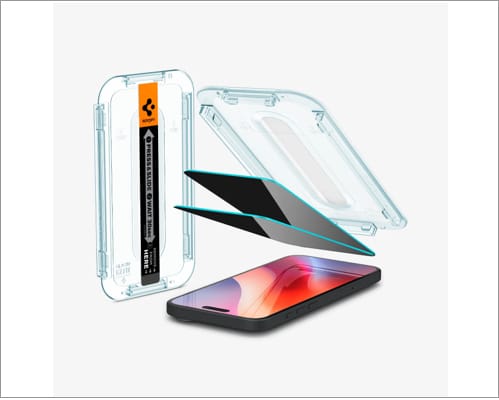 Για όσους θέλουν να προστατεύσουν ό, τι υπάρχει στην οθόνη του iPhone σας από τα αδιάκριτα μάτια σε ένα κοινό χώρο εργασίας ή ένα πολυάσχολο τρένο, το Spigen Glas.TR EZ Fit Privacy Priacy Protector είναι ακριβώς το σωστό για εσάς. Αυτός ο προστάτης οθόνης προσφέρει όλα όσα κάνει ο κανονικός προστάτης οθόνης Glas.TR EZ Fit, αλλά με πρόσθετη χαρακτηριστική προστασίας της ιδιωτικής ζωής. Παίρνετε την ίδια βαθμολογία σκληρότητας 9H, ελαιόφωνο επικάλυψη, δίσκο εγκατάστασης και υψηλή ευαισθησία αφής.