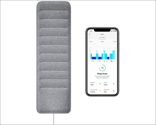 Εάν δεν θέλετε να φορέσετε μια συσκευή, αυτό το μαξιλάρι κάτω από το στρώμα είναι ένα. από τους καλύτερους ιχνηλάτες ύπνου. Μετά από εύκολη εγκατάσταση εφάπαξ, παρακολουθεί τους κύκλους ύπνου, παρακολουθεί τον καρδιακό ρυθμό και ανιχνεύει διαταραχές ροχαλητού και αναπνοής. Οι αλγόριθμοι που χρησιμοποιούνται για την ανάλυση των δεδομένων έχουν επικυρωθεί με μια ομάδα εμπειρογνωμόνων ύπνου.