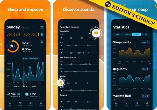 Η εφαρμογή καταγράφει τους ήχους του ροχαλητού σας ενώ κοιμάστε και σας βοηθά να καθαρίσετε τα μηνιαία στατιστικά στοιχεία. Δυστυχώς, ίσως να μην λάβετε εγγραφή πλήρους νύχτας, εκτός εάν αναβαθμίσετε το σχέδιο υψηλής ποιότητας. Υπάρχει επίσης ένα τμήμα για να ελέγξετε τους παράγοντες που επηρεάζουν τον ύπνο σας.