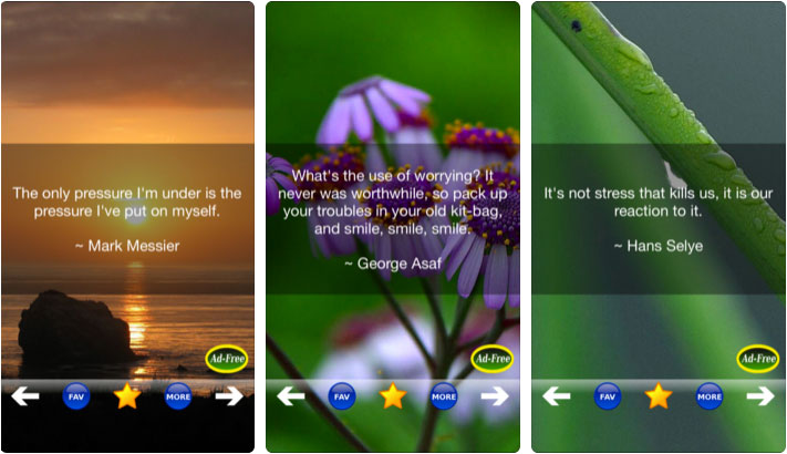 Με αυτήν την εφαρμογή στη διάθεσή σας, μπορείτε να διαβάσετε πολλά αποσπάσματα κατά του στρες. Δεν θα βοηθήσουν μόνο στην απομάκρυνση της απογοήτευσης των πτώσεων, αλλά και να σας βοηθήσουν να βρείτε ένα καλύτερο μονοπάτι. Εκτός αυτού, μπορείτε να αποθηκεύσετε αυτά τα πολύτιμα λόγια και επίσης να τα μοιραστείτε με τους φίλους σας στο Facebook.