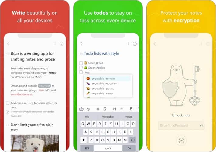 Η αρκούδα είναι περισσότερο από μια εφαρμογή λήψης σημειώσεων πρώτα. Η εφαρμογή είναι γνωστή για το διαισθητικό περιβάλλον χρήστη και χρησιμοποιεί ένα UI με κηλίδες με σημειώσεις και ετικέτες στο μενού Hamburger. Μπορείτε εύκολα να παρακολουθήσετε την προσοχή της εταιρείας στο UI χρησιμοποιώντας σημειώσεις αρκούδας.