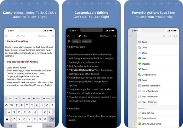 Το Drafts είναι ένα λογισμικό αποκλειστικής Apple. Είναι προσβάσιμο σε iPhone, iPad, Mac και Apple Watch και διαθέτει δωρεάν δοκιμή 7 ημερών.