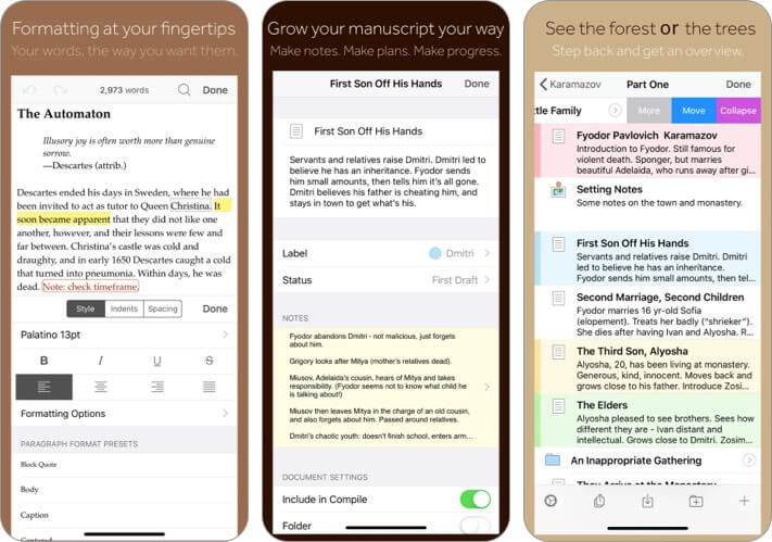 Το Scrivener είναι διαθέσιμο σε Mac, iPhone, iPad και Windows.