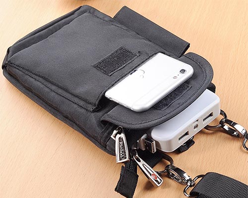Έχει έξι ελαστικές υποδοχές με μικρές ελαστικές τσέπες πλέγματος για να σας επιτρέψει να αποθηκεύσετε με ασφάλεια το καλώδιο, τα καλώδια και τα ακουστικά. Το κλείσιμο του Velcro Flap προσφέρει μεγαλύτερη ευελιξία. Επιπλέον, υπάρχει ένα δεύτερο διαμέρισμα με φερμουάρ με δύο ελαστικές τσέπες πλέγματος για να σας επιτρέψει να κρατήσετε το τηλέφωνο και να φορτίσετε αξεσουάρ.