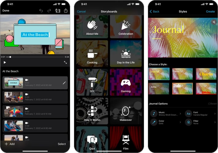 Πράγματι, η εφαρμογή έχει περισσότερα χαρακτηριστικά πέρα από αυτό που μπορεί να καλύψει αυτό το άρθρο. Τούτου λεχθέντος, αυτό που είναι δελεαστικό είναι το περίγραμμα του και το storyboard. Ως εκ τούτου, μπορείτε να δημιουργήσετε ρυμουλκούμενα κόβοντας τα βίντεό σας σε κατακερματισμένες ιστορίες.Χρησιμοποιώντας τη λειτουργία ταινίας, μπορείτε να προσθέσετε, να κόψετε, να κόψετε καισυγχωνεύστε τους από το βίντεο σαςAllery.