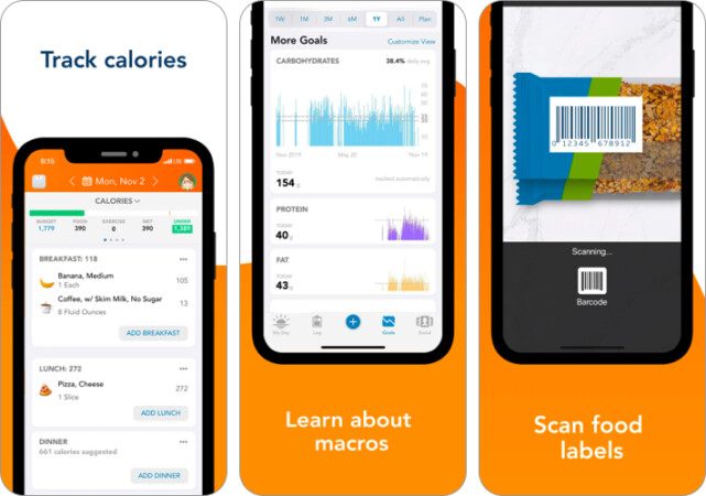 Για να ξεκινήσετε με τις εφαρμογές, πρέπει να εισαγάγετε μερικά κομμάτια δεδομένων. Μόλις ολοκληρωθεί, θα λάβετε μια μέτρηση θερμίδων ανάλογα με το στόχο σας. Ωστόσο, η δωρεάν έκδοση δεν παρέχει πληροφορίες σχετικά με την κατανάλωση μακροθρεπτικών συστατικών. Για να βοηθήσετε στην παρακολούθηση της κατανάλωσης τροφίμων, μπορείτε να σαρώσετε γραμμωτούς κώδικες ή να προσθέσετε τον αριθμό θερμίδων.