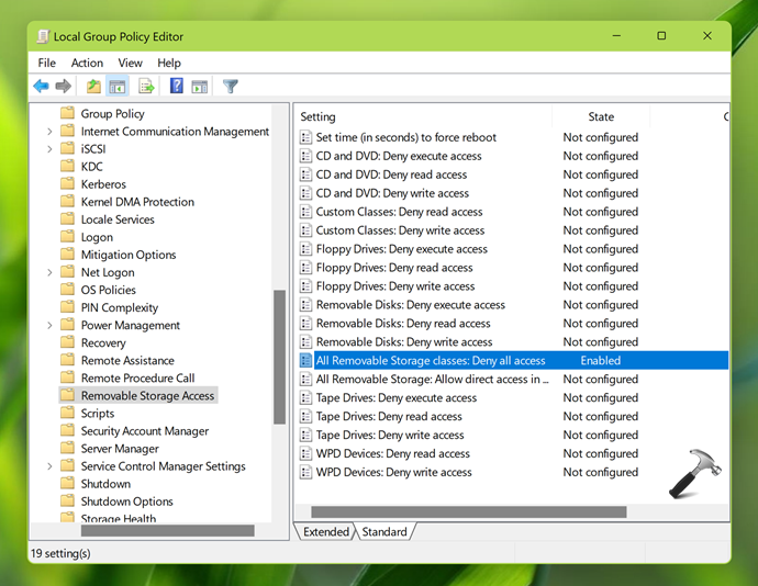 Computer Configuration > Administrative Templates > System > Removable Storage Access