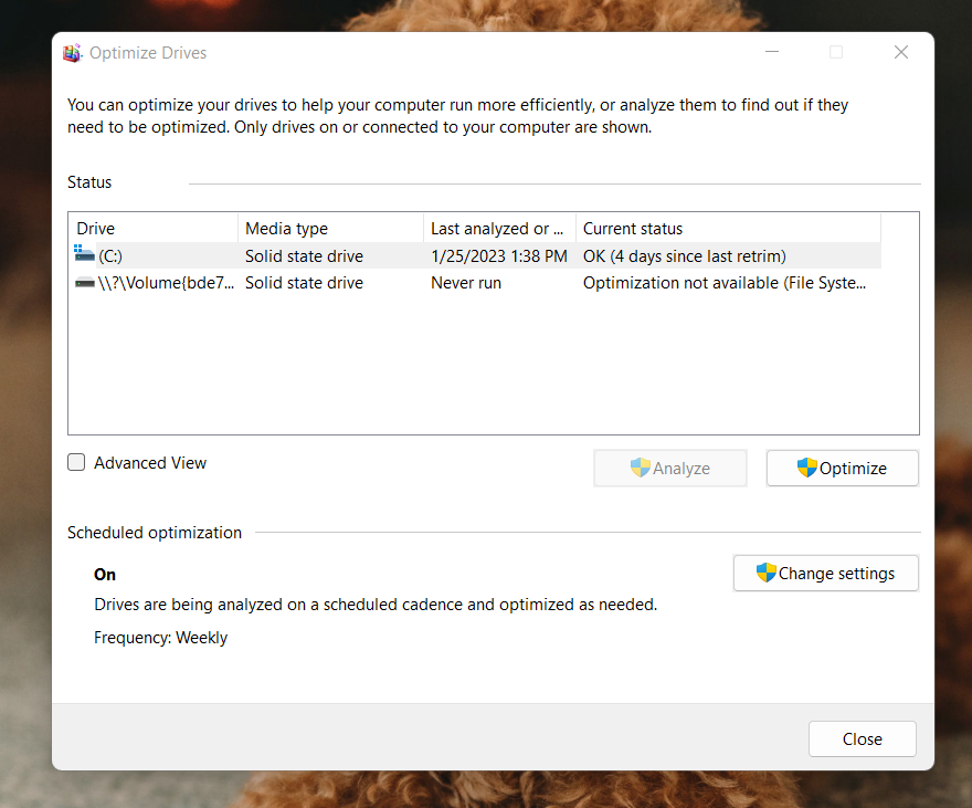 - Επιλέξτε τη μονάδα δίσκου που θέλετε να βελτιστοποιήσετε.