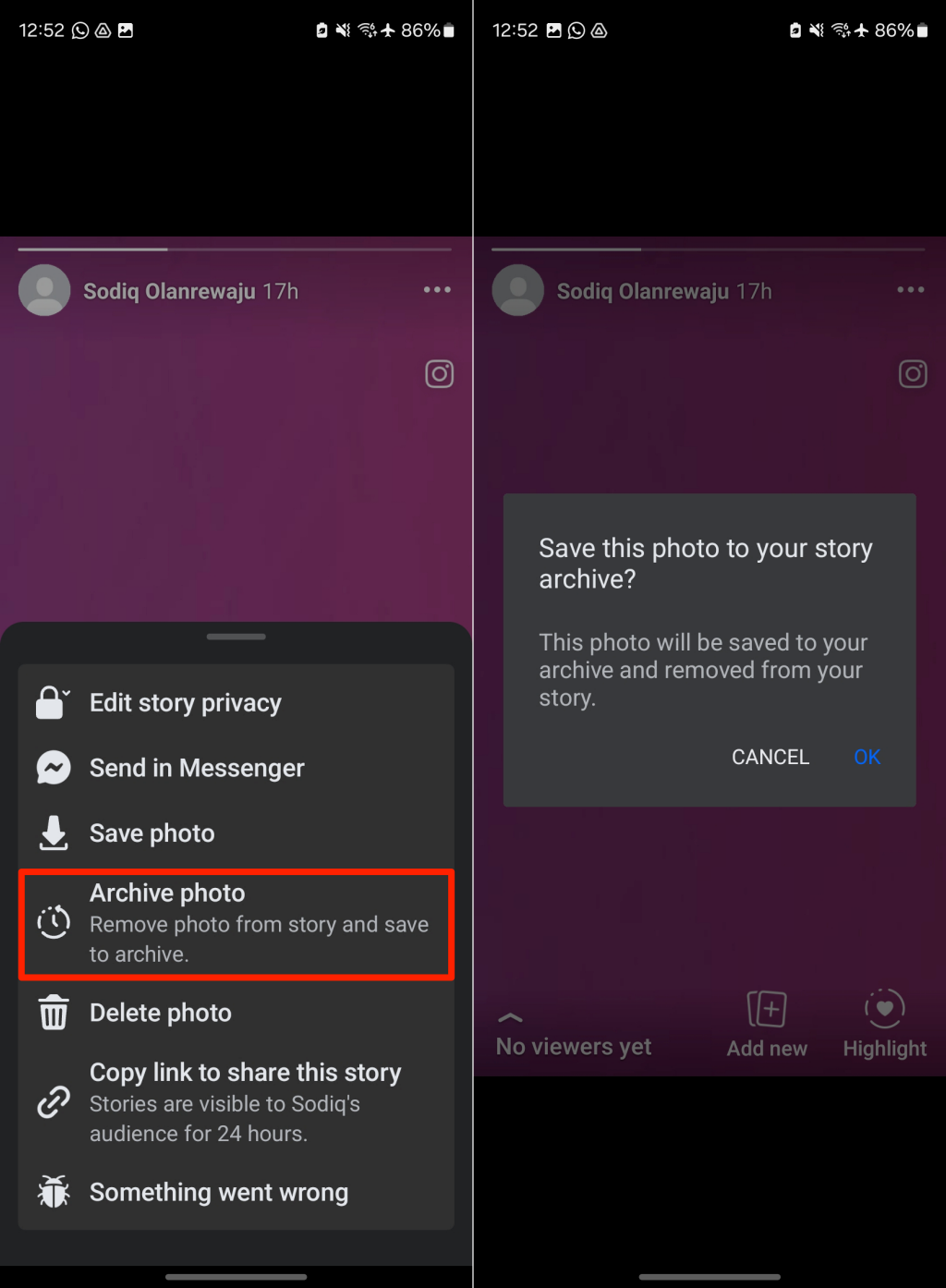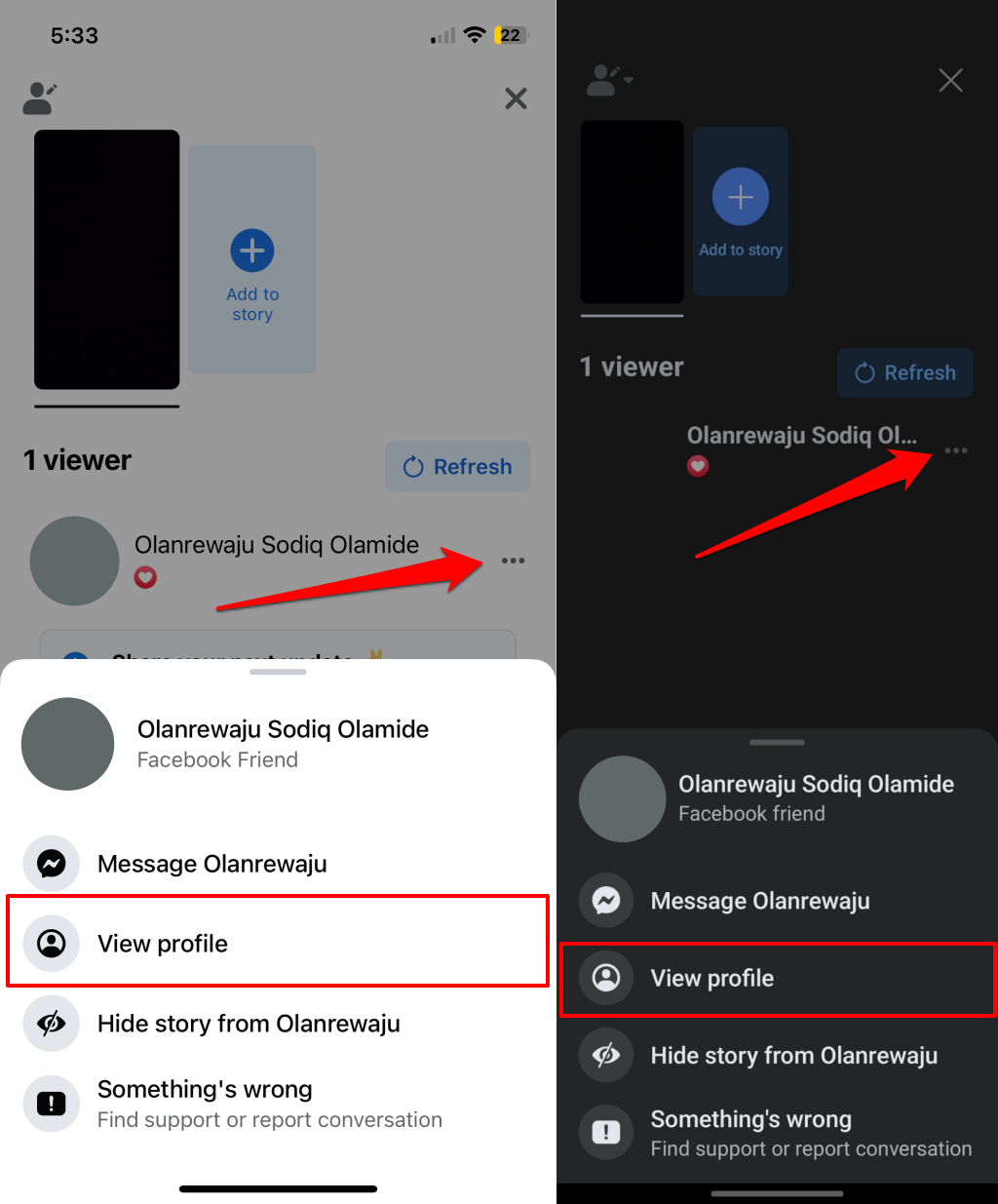 - Ανοίξτε την ιστορία σας στην εφαρμογή Facebook και πατήστε τοΕικονίδιο μενού/εικόνα προφίλστην επάνω δεξιά (Android) ή στη γωνιά δεξιά (iOS).