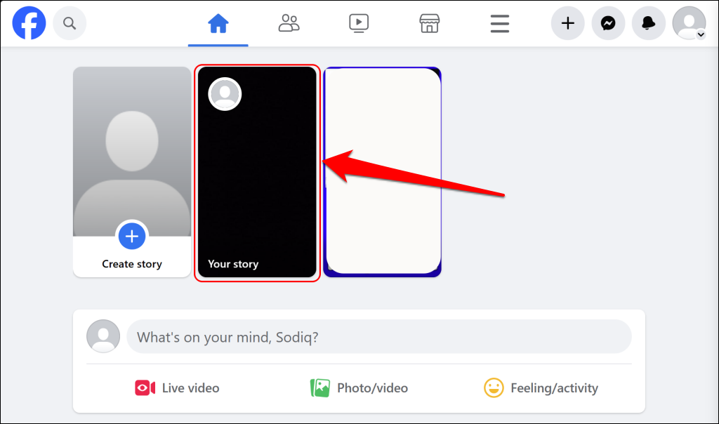 - Επιλέξτε τοΗ ιστορία σαςΚάρτα στην κορυφή της αρχικής σελίδας του Facebook.