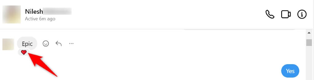 - Βρείτε το μήνυμα για να αντιδράσετε και να κάνετε διπλό κλικ στο μήνυμα για να προσθέσετε μια αντίδραση Emoji Heart.