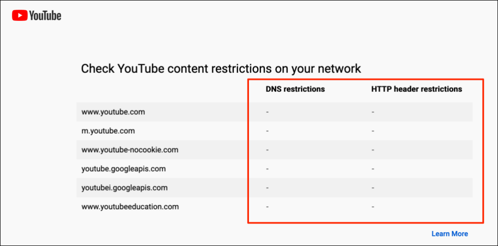 Εάν δεν μπορείτε να απενεργοποιήσετε την περιορισμένη λειτουργία μέσω Wi-Fi, οι ρυθμίσεις DNS του δρομολογητή σας πιθανόν να εμποδίσουν το YouTube. Επισκεφτώ τοΣελίδα περιορισμού περιεχομένου YouTubeΓια να επαληθεύσετε ότι το δίκτυό σας δεν έχει ειδικούς περιορισμούς στο YouTube.